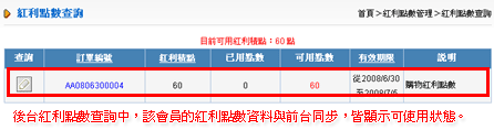 商品資料查詢」中也會出現紅利欄位,供其加上紅利點數,若不設定則紅利值預設為零。 |