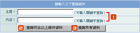 輸入關鍵字查詢:在主題或內容欄位,輸入關鍵字查詢。 |