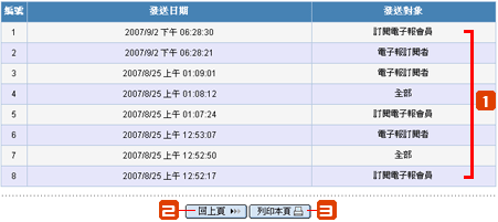 點選此按鈕會列出該電子報發送紀錄。