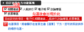 您也可以點選 ,自訂首頁右方功能區塊。設定方式同上。設定完成後,則前台首頁右方會顯示相關連結。 |
