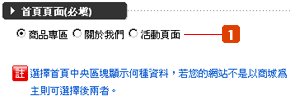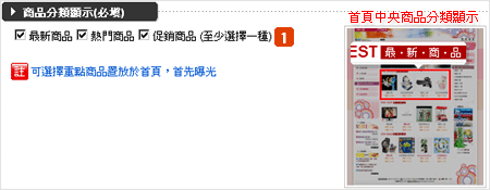 選擇數量:設定首頁中央商品分類下,列出之最多商品數量。 |