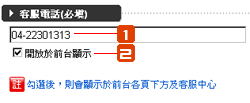 勾選是否開放:若勾選,則會顯示於前台各頁下方及客服中心中的聯絡資訊。