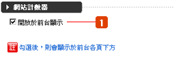 勾選是否開放:若勾選,則會在前台各頁下方,顯示目前網站瀏覽總人次。